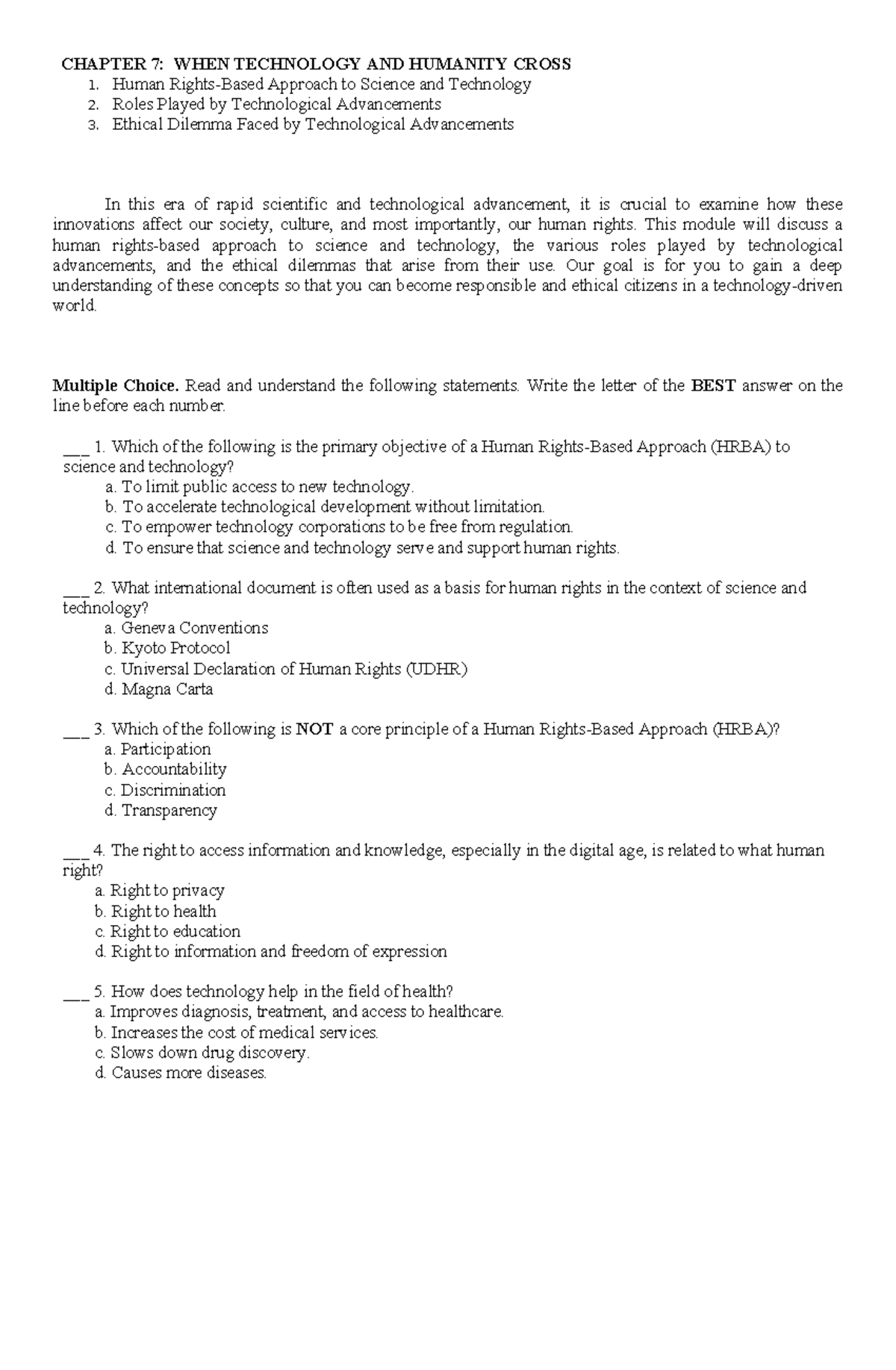 Chapter 7: Human Rights and Technology Intersection - HRBA ST - Studocu
