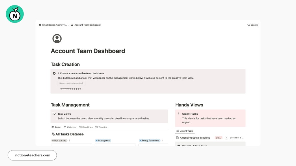 Plantilla Small Design Agency Task Management de InNotion | Notion ...