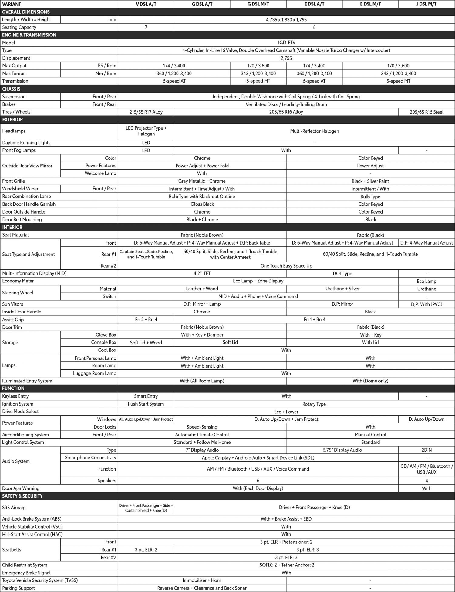 Toyota Innova Specifications - Dimensions, Configurations, Features ...