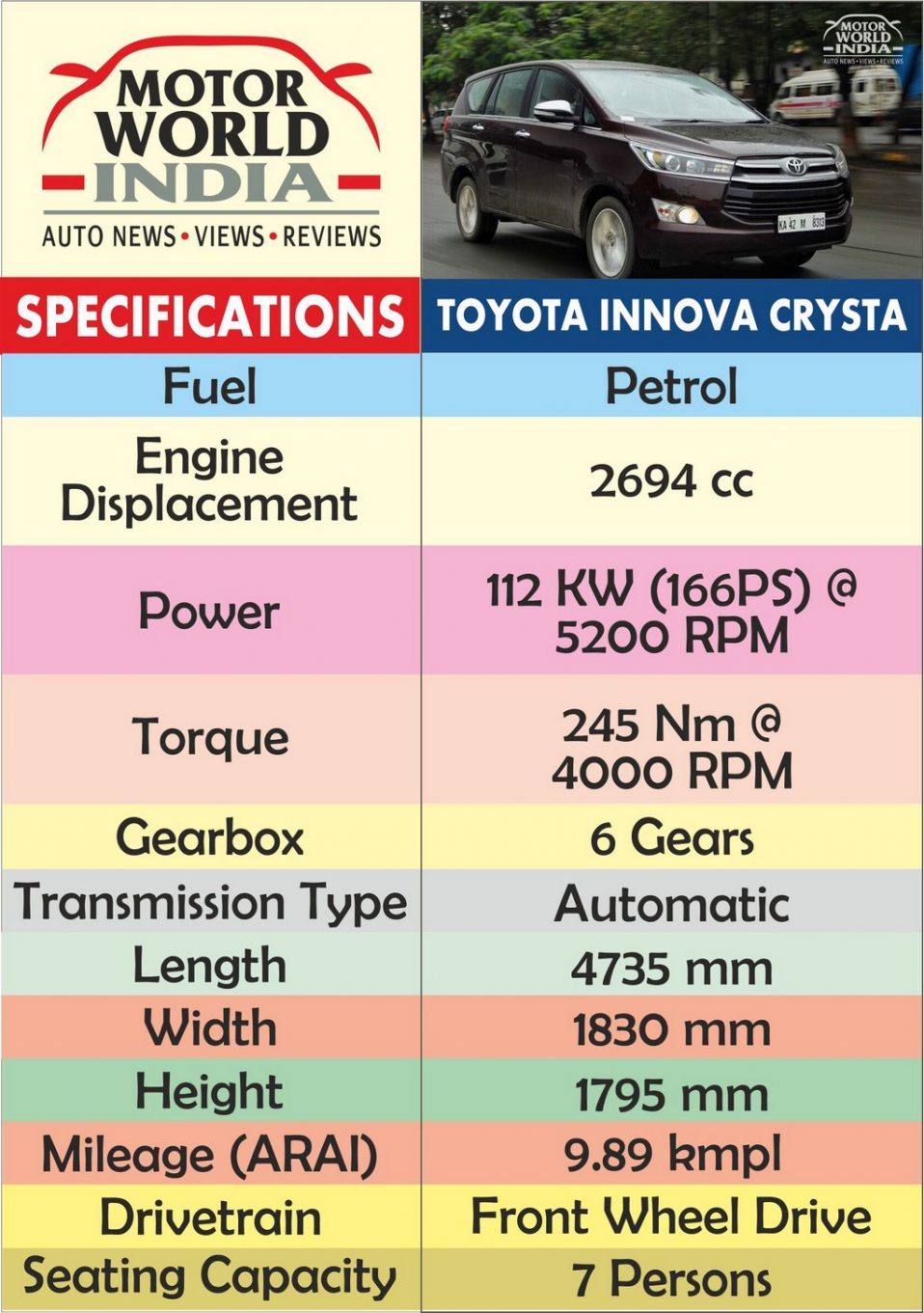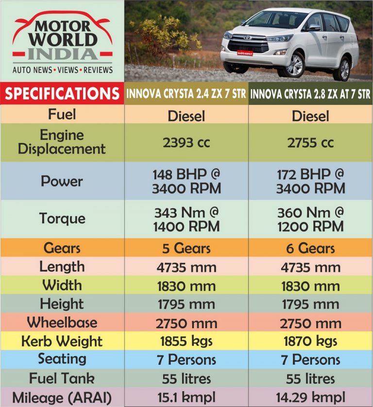 Toyota Innova Crysta Specifications - Innova Crysta Configurations ...