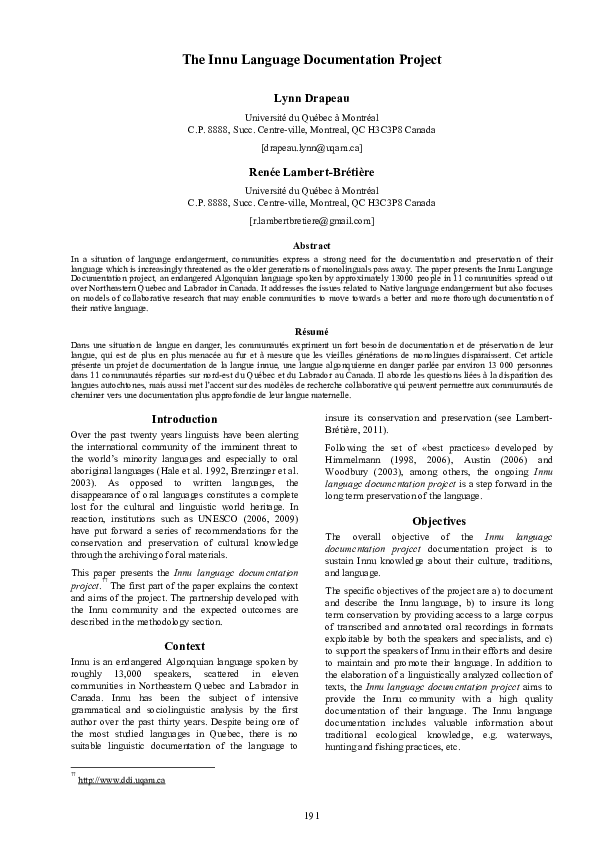 Challenges and Perspectives for Innu-Aimun within Indigenous Language ...