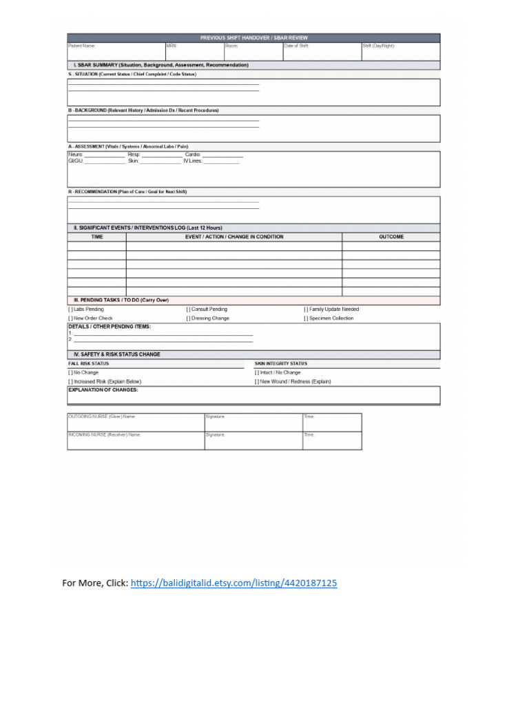 Inpatient Nursing Report & Shift Notes Binder | PDF