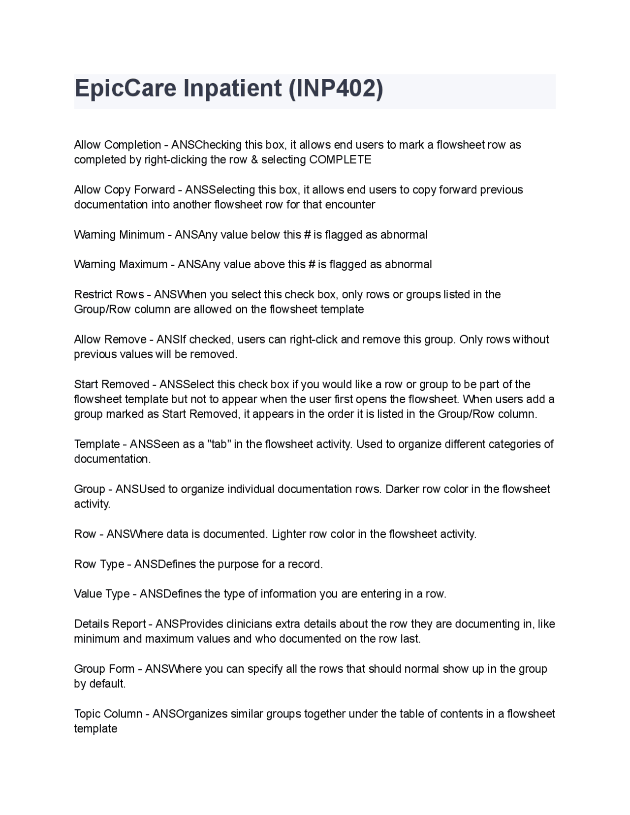 EpicCare Inpatient Flowsheet Template Building Guide | Exams Nursing ...