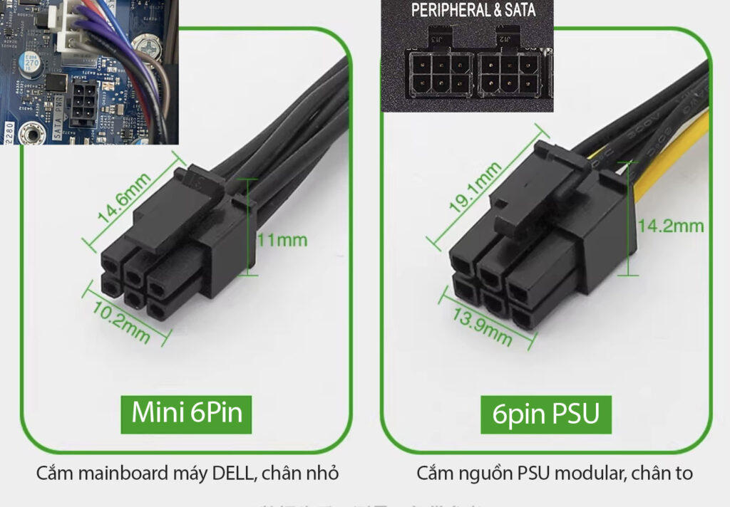 Cáp nguồn mini 6pin sang 2 SATA ổ cứng HDD SSD cho Dell Slim/ Tower ECS1250