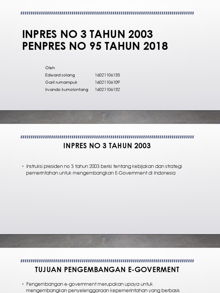 INPRES NO 3 TAHUN 2003 Dan PENPRES NO 95 TAHUN 2018 | PDF | Seni | Komputer