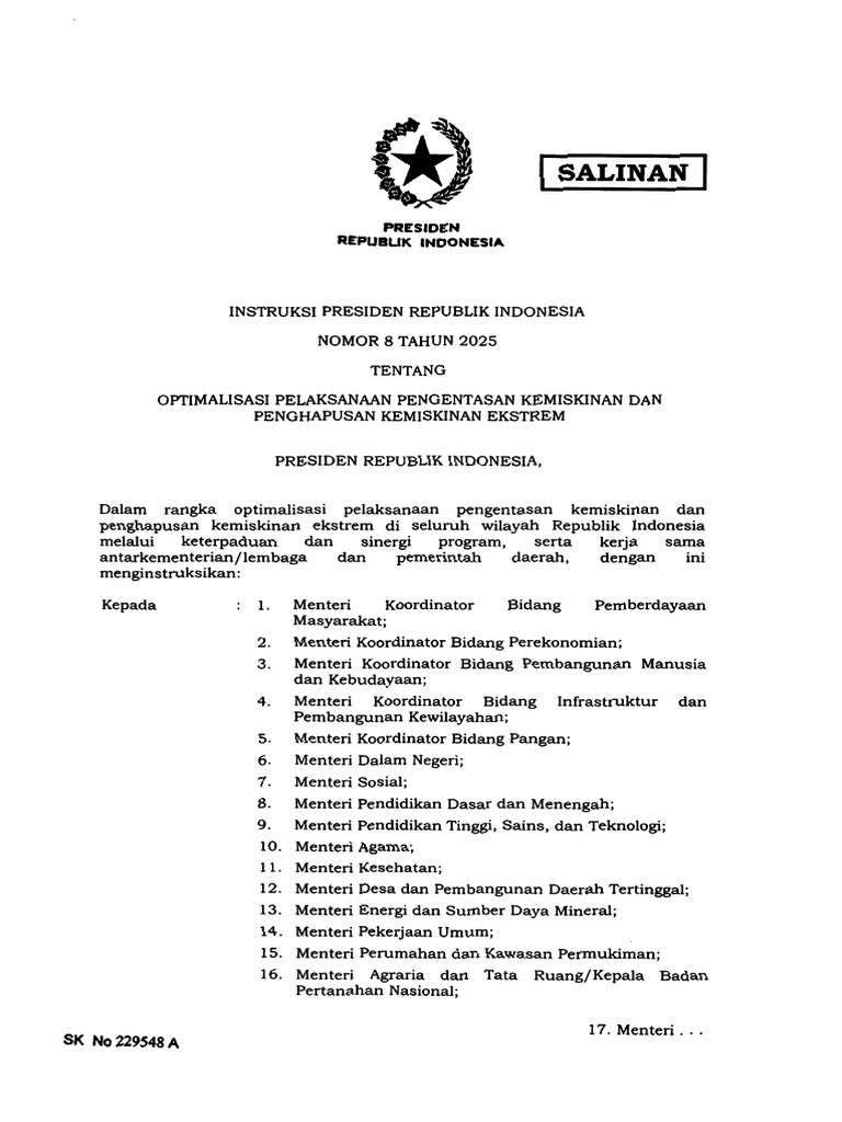 Inpres Nomor 8 Tahun 2025 | PDF