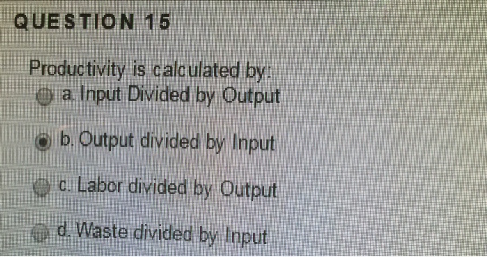 Solved Productivity is calculated by: Input Divided by | Chegg.com