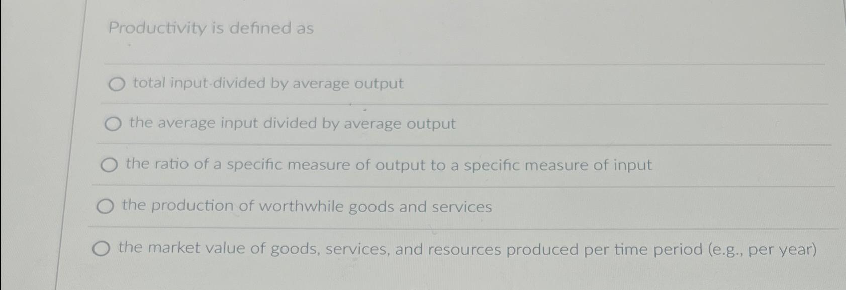 Solved Productivity is defined astotal input divided by | Chegg.com
