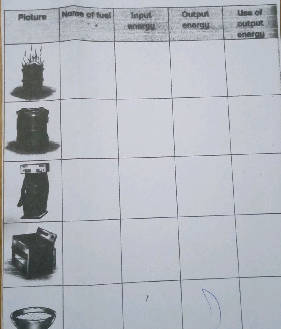 Picture | Name of fuel | Input energy | | StudyX