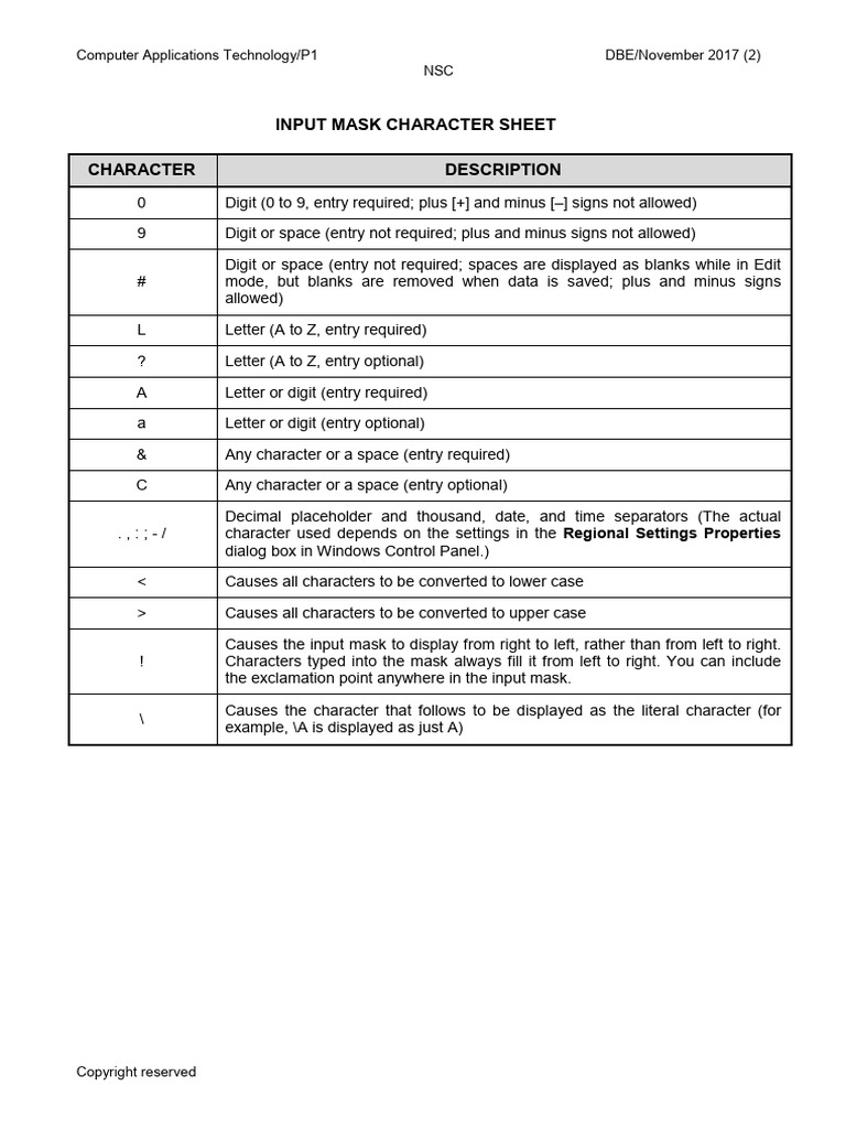 NSC 2023: Input Mask Character List for Computer Applications Tech ...