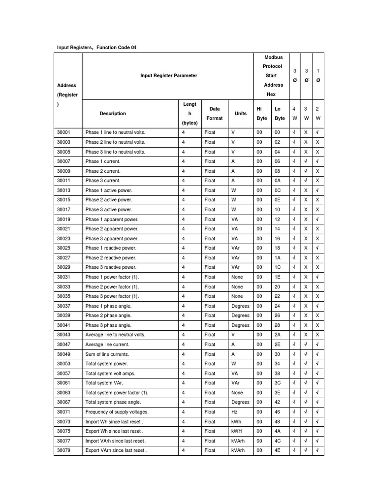 Modbus Register Mapping for Electrical Power Meter Input Registers ...