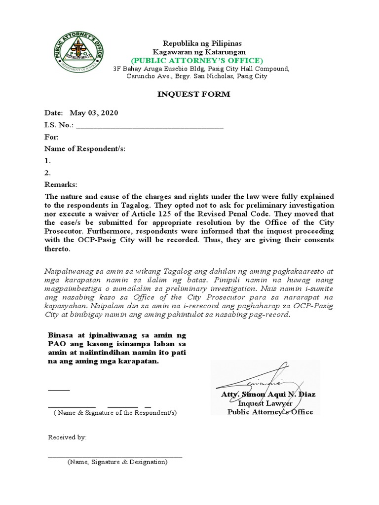Inquest and Preliminary Investigation.docx - Republic of the ...