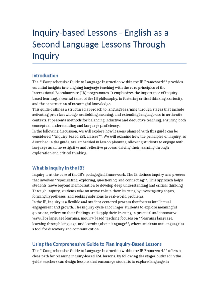 Inquiry Based Lessons ESL Through Inquiry | PDF | Inquiry Based ...