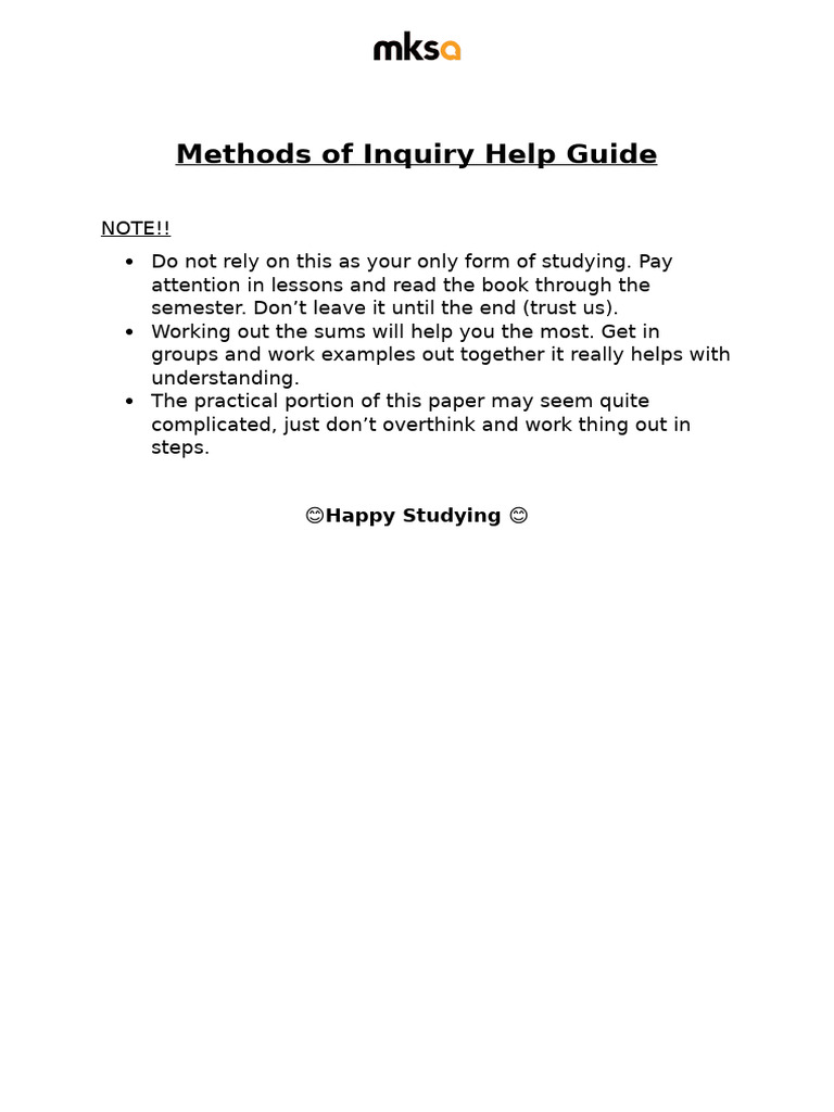Methods of Inquiry - Sample Paper | PDF | Standard Deviation | Standard ...
