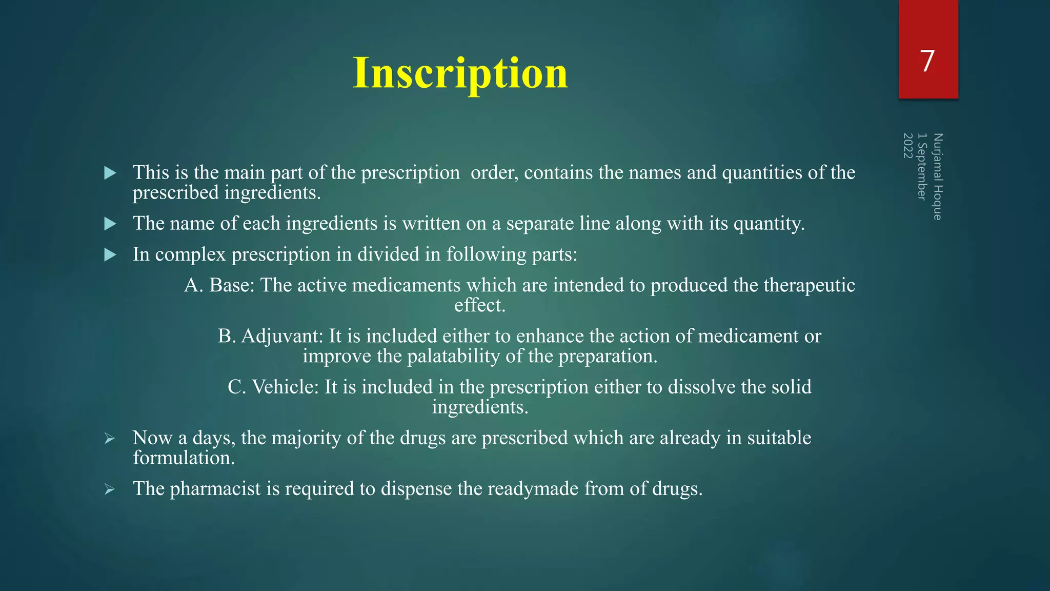 Prescription, Parts and Handling of Prescription.pptx