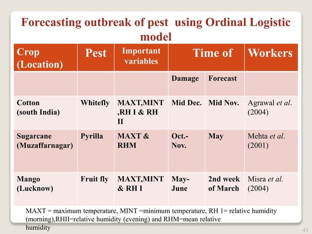 forecasting model for insect pest | PPTX | Agriculture | Industries