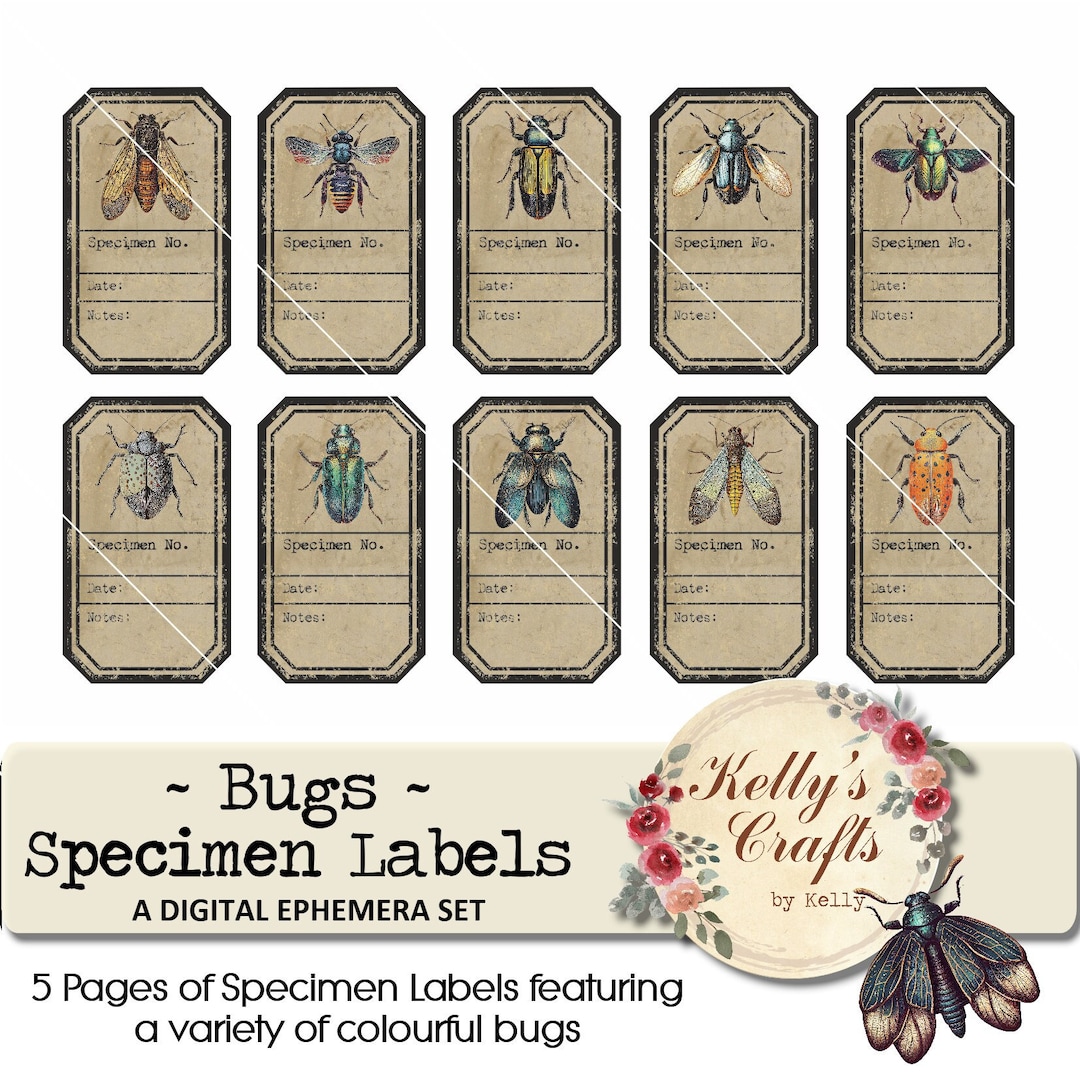 Specimen Labels With Bugs, Digital Download, Printable Journal Ephemera ...