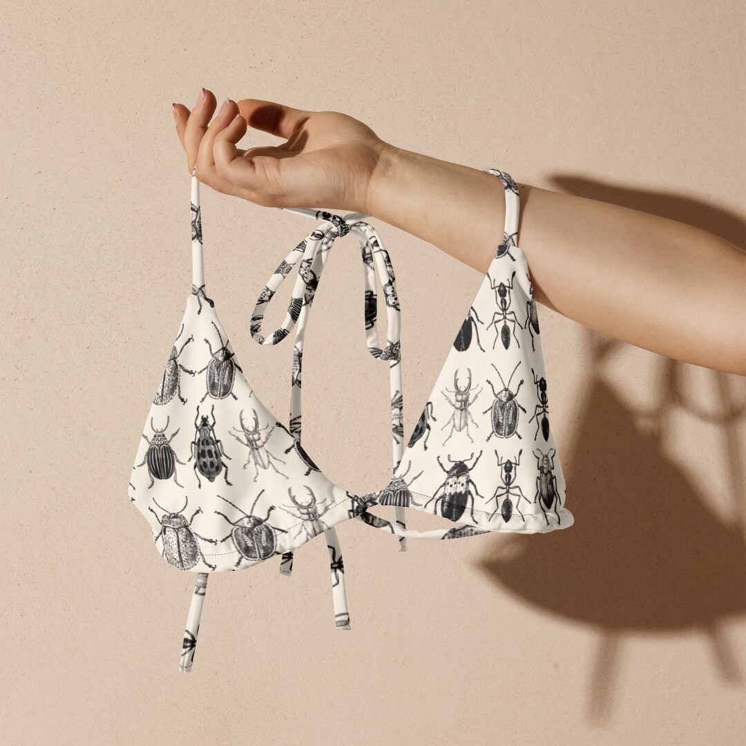 Insects Print Recycled String Bikini Top, Bug Bathingsuit, Insect ...
