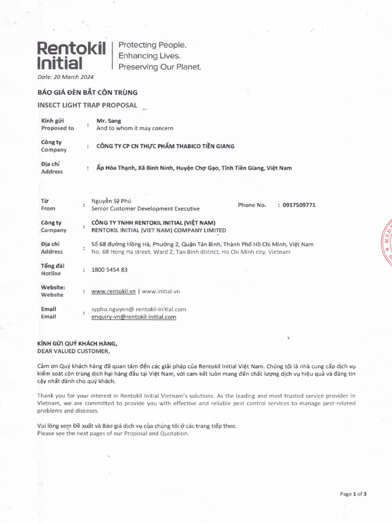 Báo Giá Đèn Bắt Côn Trùng (Insect Light Trap Proposal) | PDF