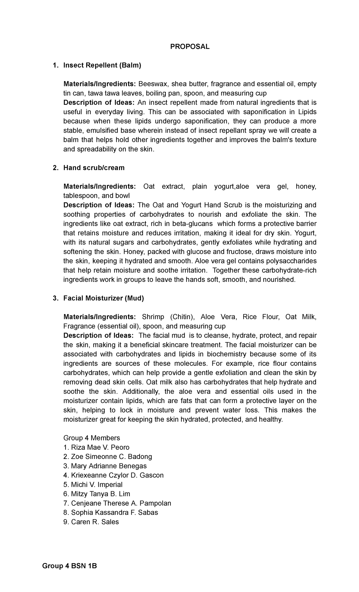 Group 4 BSN 1B Proposal - PROPOSAL Insect Repellent (Balm) Materials ...