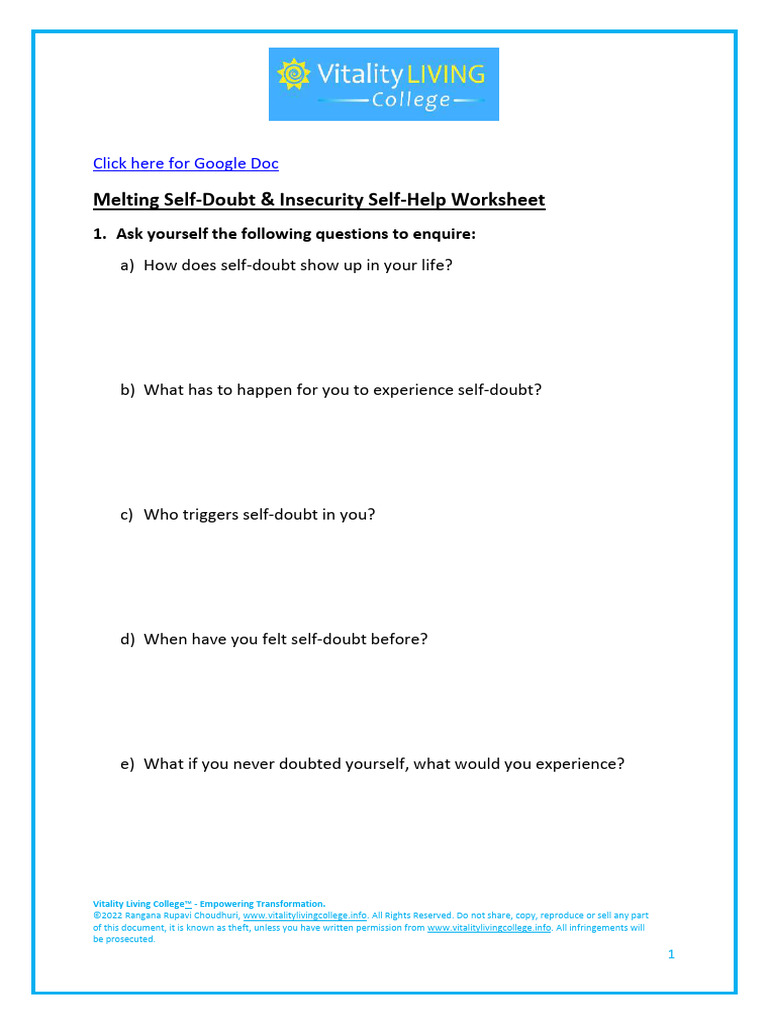 Melting Self-Doubt & Insecurity Self-Help Worksheet (Article) Author ...