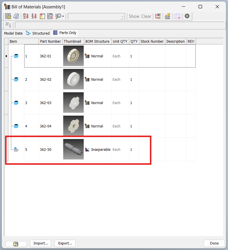 Inseparable Sub-Assemblies Showing ALL PARTS in Structured BOM/Export ...