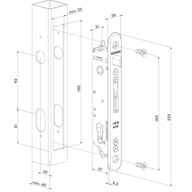FORTYLOCK - INSERT LOCK WITH 20 MM BACKSET FOR PROFILES OF 40 MM OR ...