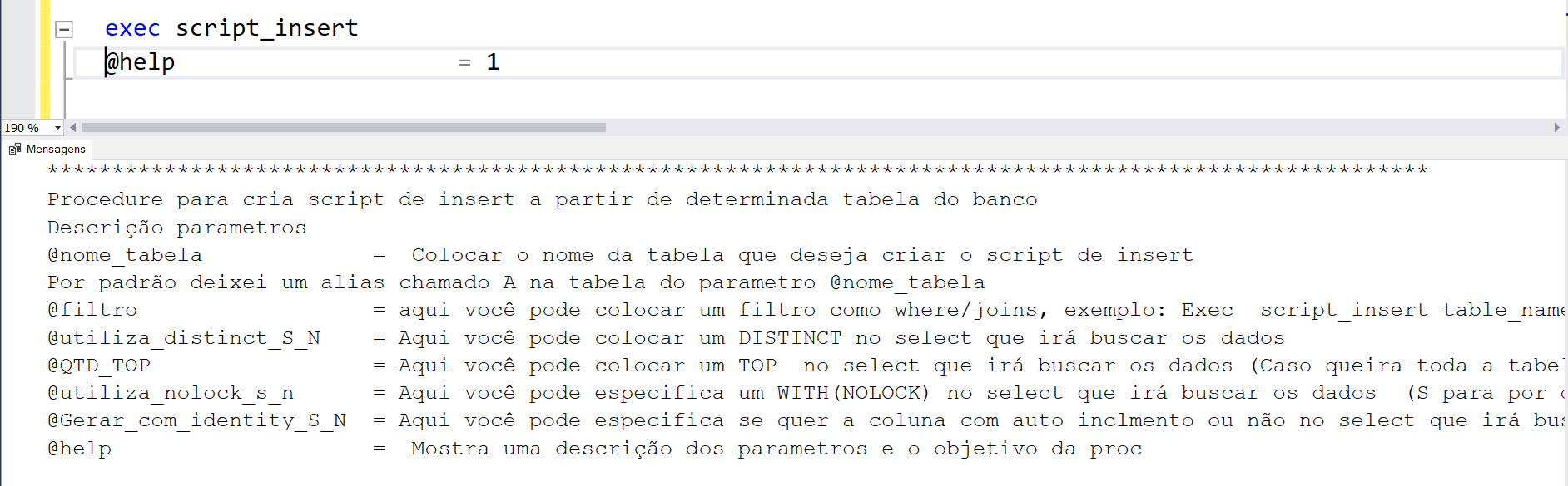 Procedure que cria um script de insert.