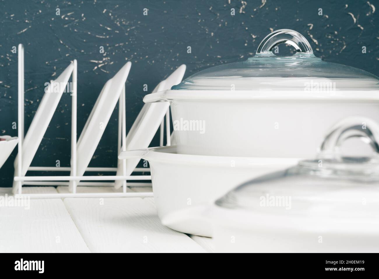 White pot cookware in a kitchen interior Stock Photo - Alamy