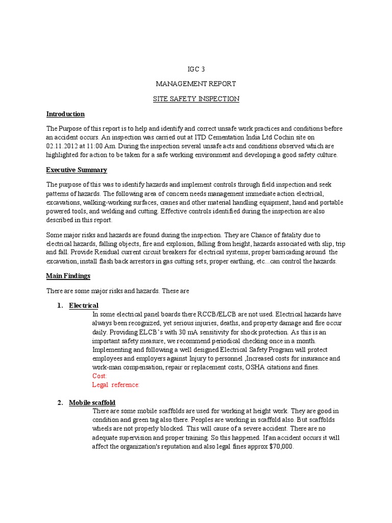 Safety Inspection Report Summary | PDF | Occupational Safety And Health ...