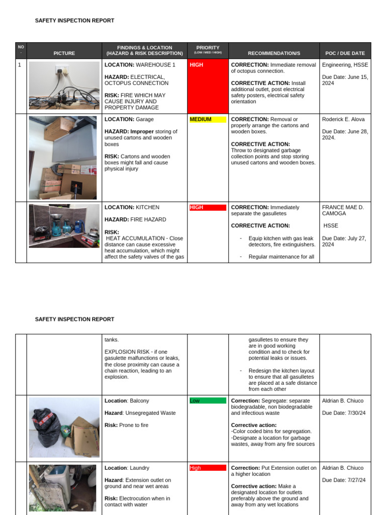 Safety Inspection Report Group 1 | PDF | Hazards | Safety
