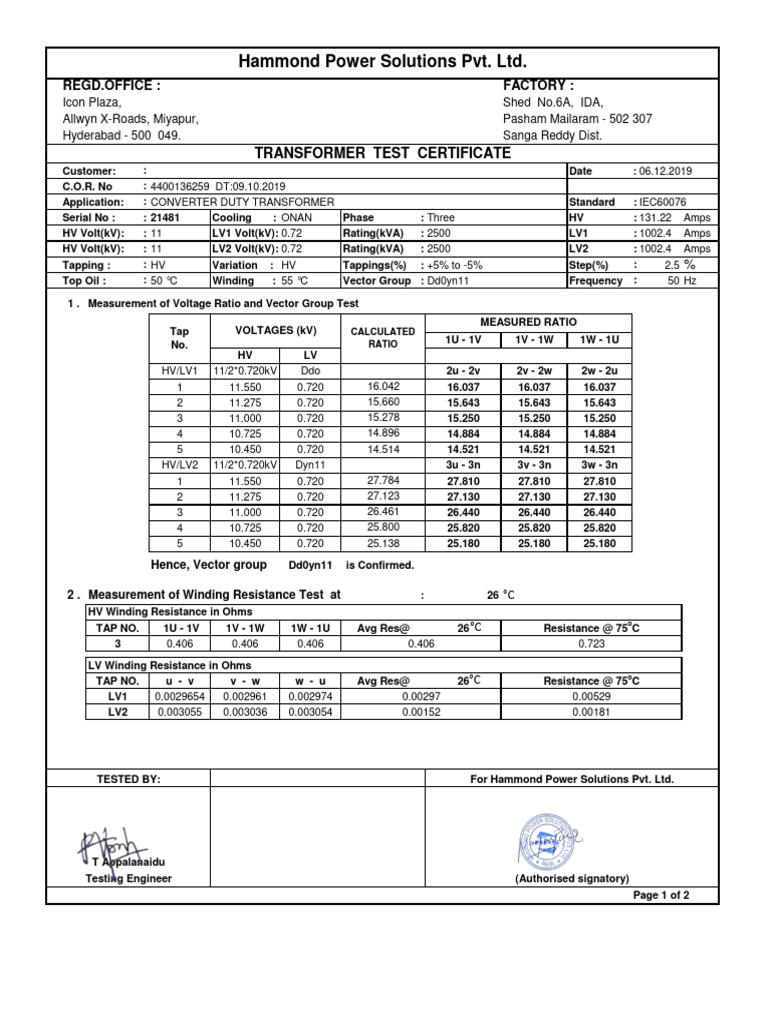 2500kva Inso-984 SL - No 21481 Routine Test Report | PDF | Transformer ...