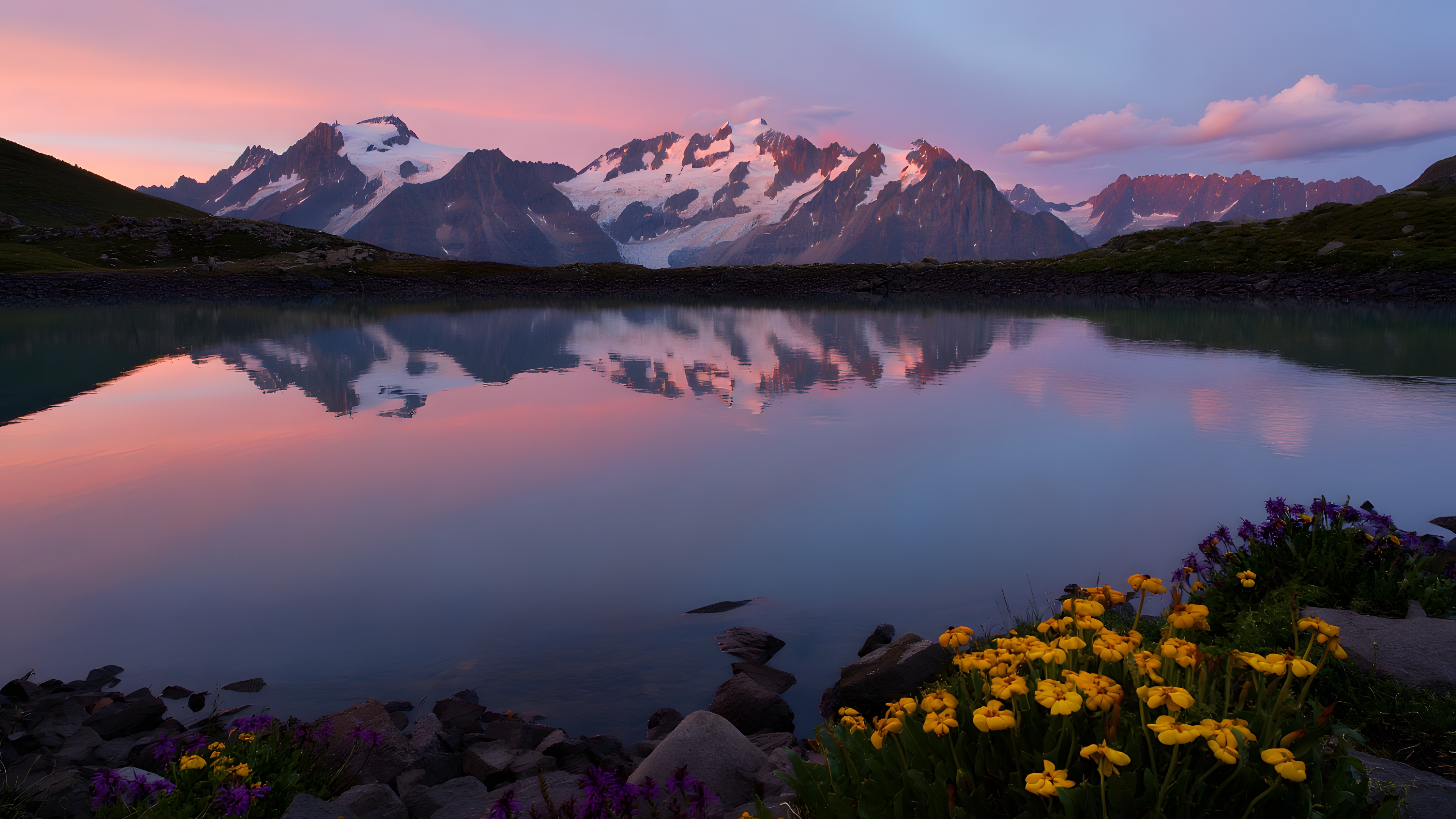 Serene Mountain Reflections Over Tranquil Lake - backiee