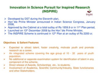(Inspire Programme) : Pursuit For Inspired Research (INSPIRE) ' Being ...