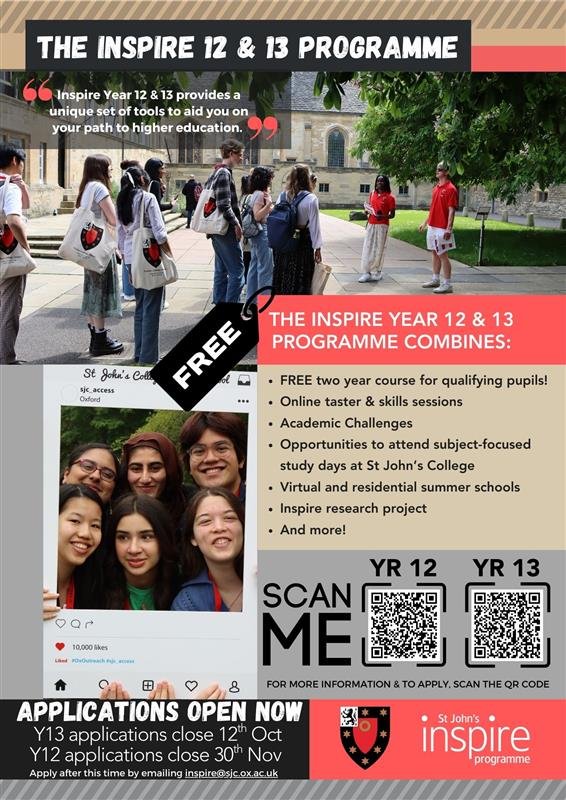 Inspire Years 12 and 13 | St John's College, Oxford