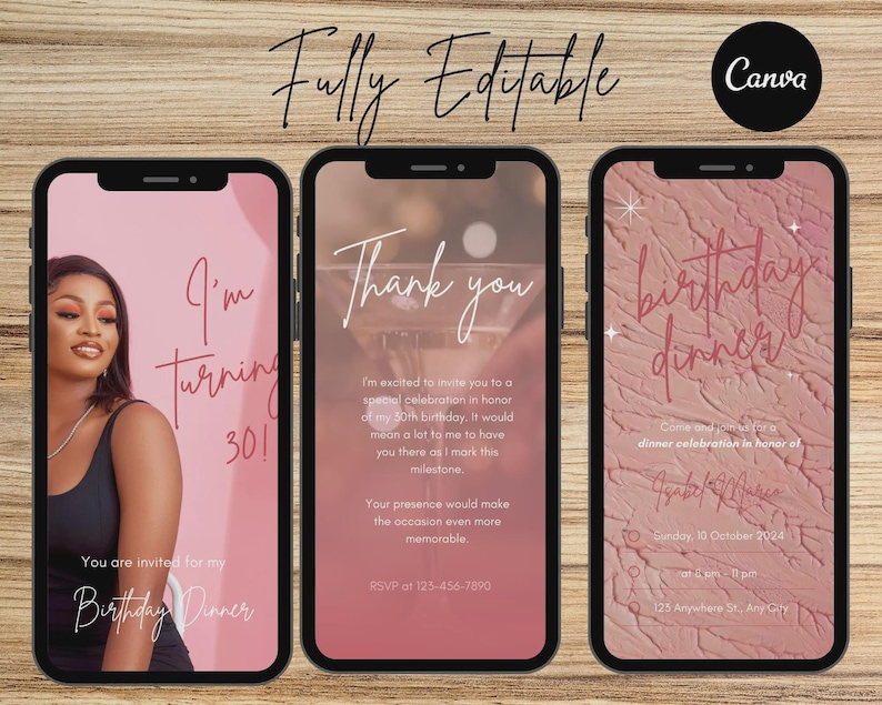 Adult Birthday Invitation Video Template , 30th 40th 50th 60th, Pink ...