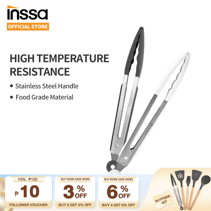 Inssa Silicone Non-Slip Food Tong Stainless Steel Kitchen Clip Bread ...