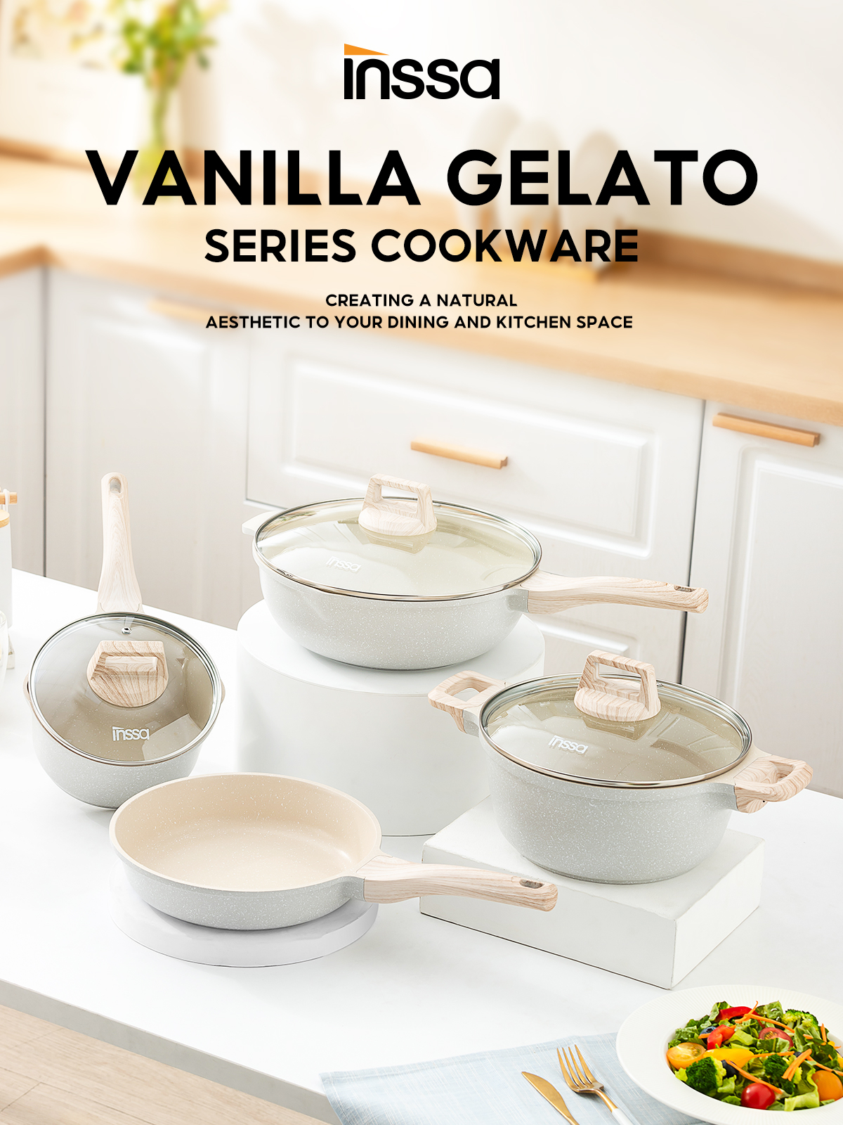 Inssa Cookware Combo Vanilla Series Set Wok Frying Pan Soup Pot ...