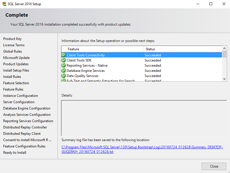 SQL Server 2016 Installation on Windows 10