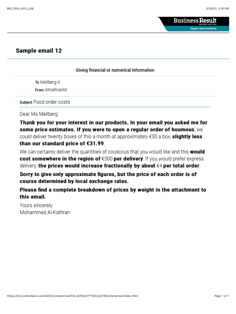 Unit 12 Sample Email | PDF