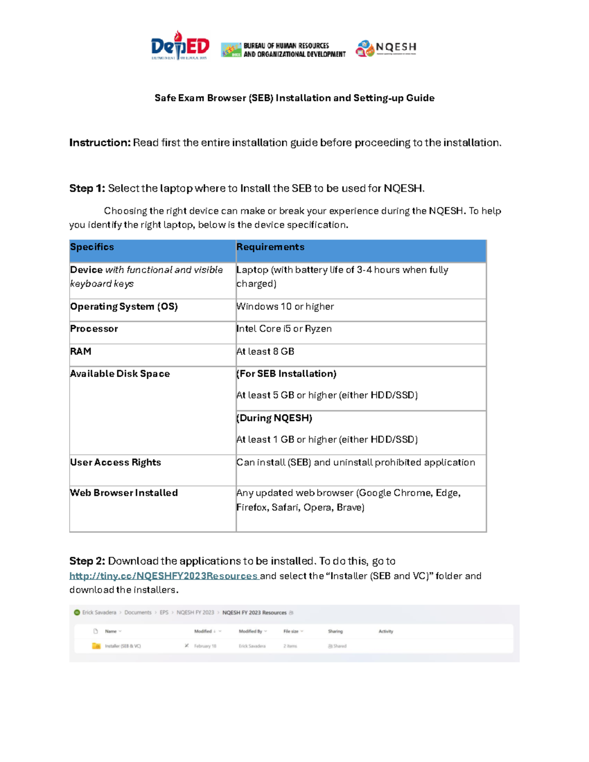 1.SEB setup Windows - GUIDE TO INSTALL AND LAUNCH THE SAFE EXAM BROWSER ...