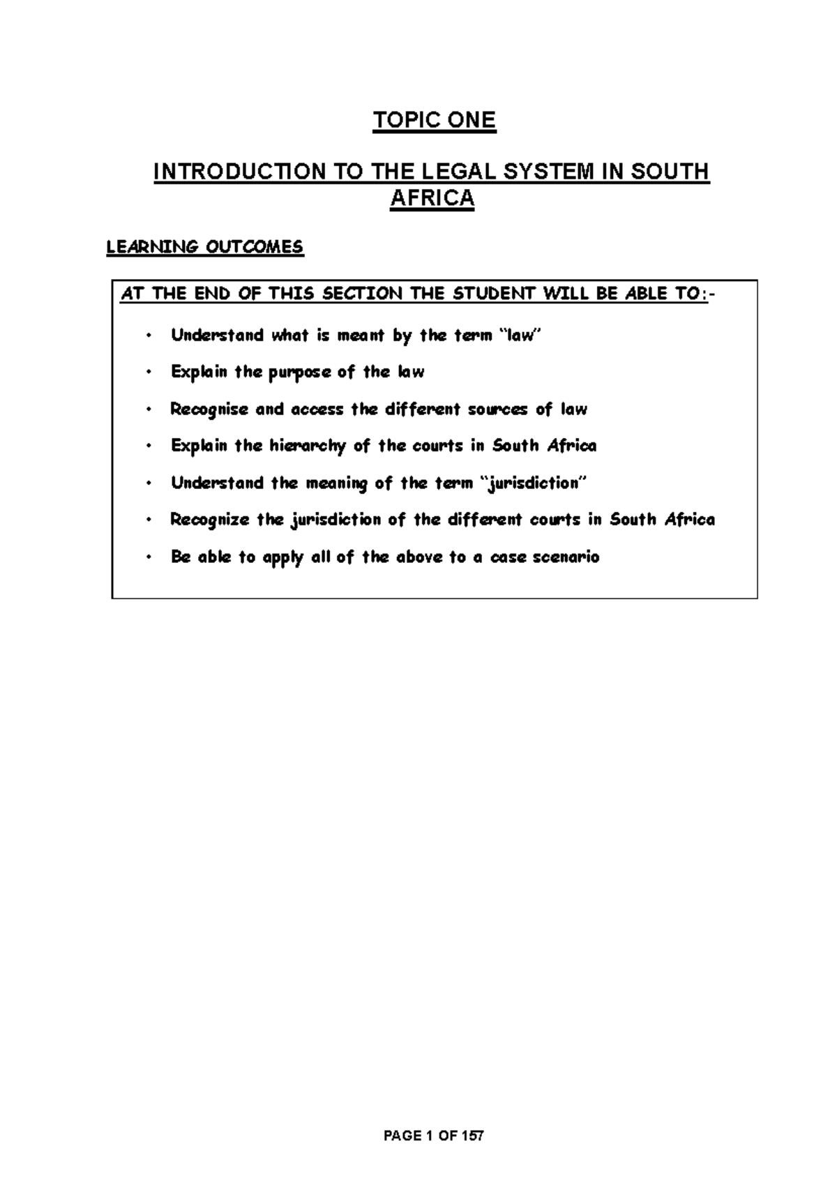 Introduction to the Legal System in South Africa - Lecture Notes - Studocu