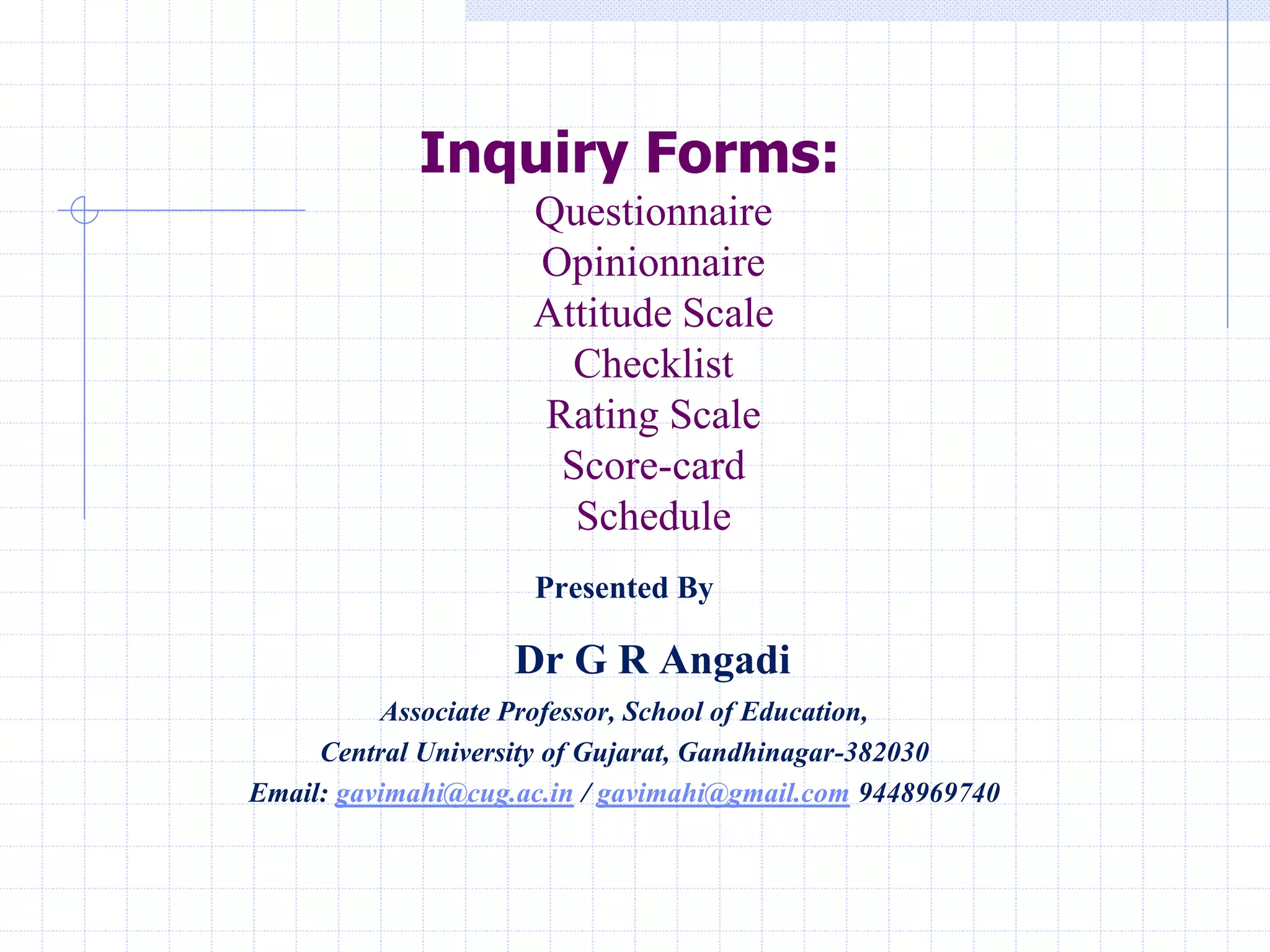 Inquiry forms questionnaire, opinionnaire, attitude scale, checklist ...