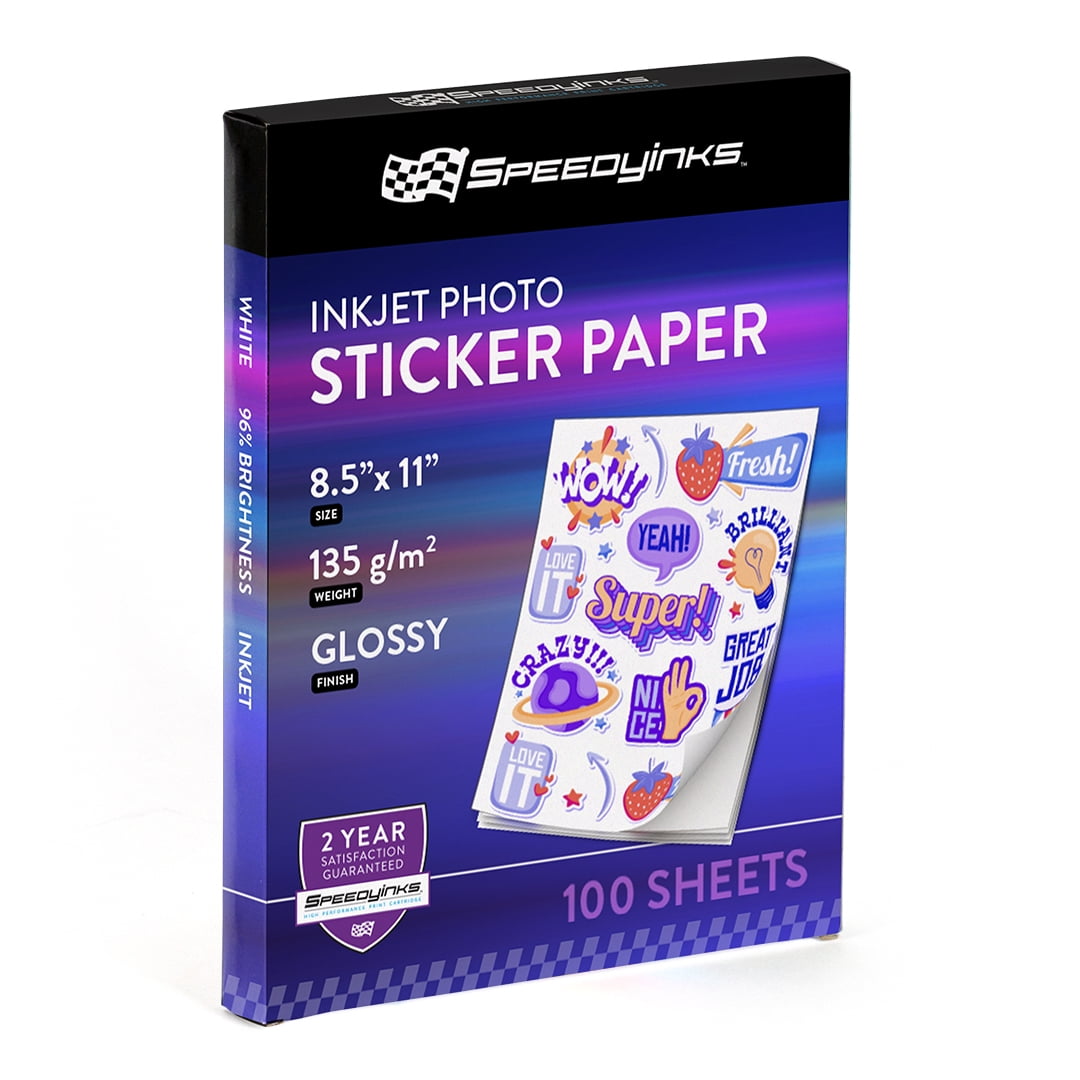 Speedy Inks Glossy Inkjet Photo Sticker Paper 8.5X11 100 Sheets (1-Pack ...