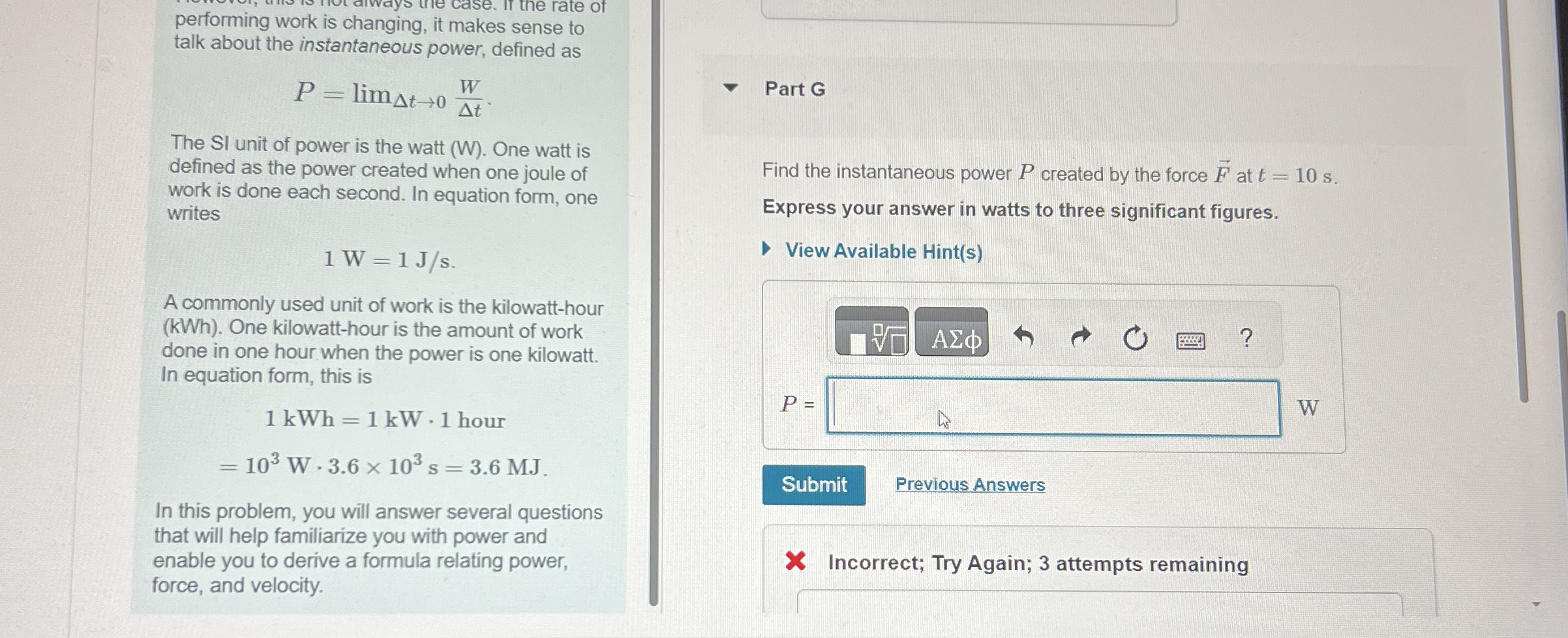 Understanding Instantaneous Power and Work: Calculating | Course Hero