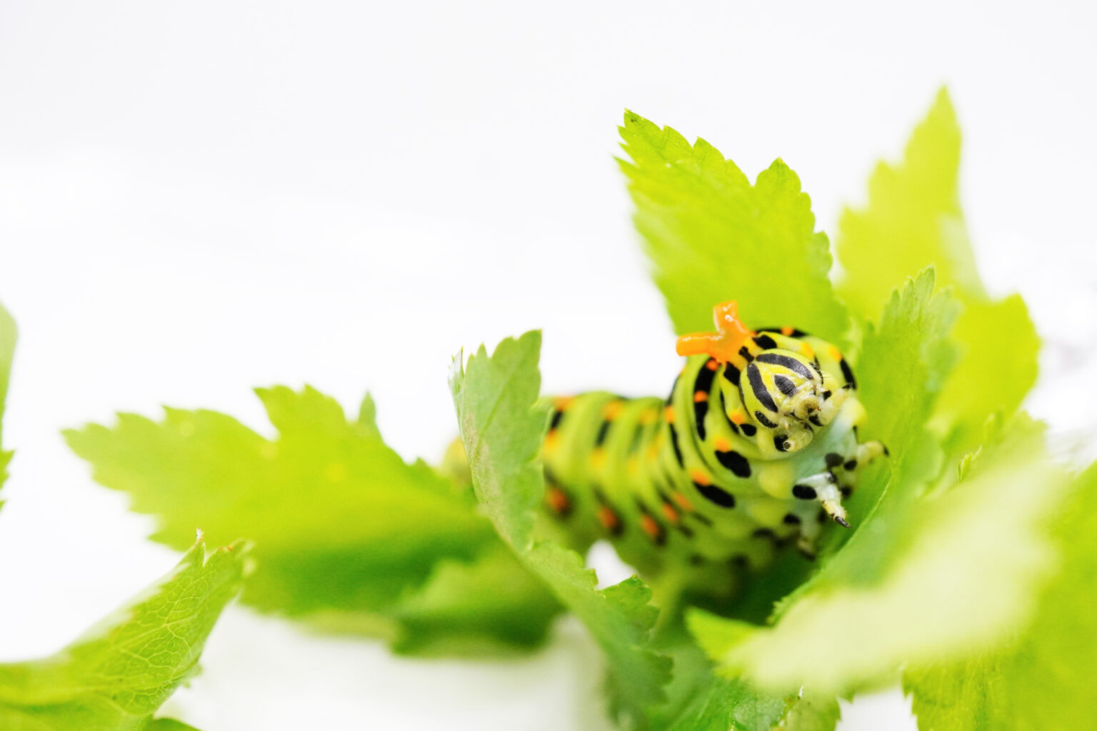 Caterpillar instar of swallowtail butterfly. Insects eating leaves ...