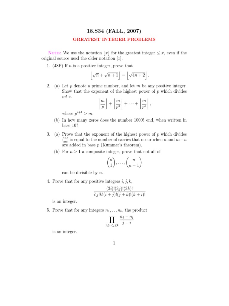 Greatest Integer Problems and Solutions | PDF | Teaching Methods ...