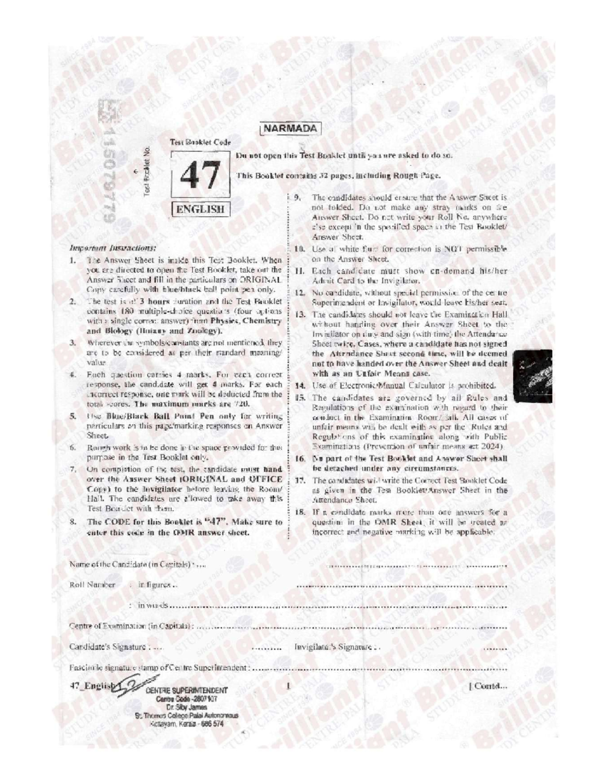 NEET UG (47) - Comprehensive Test Booklet Guidelines and Instructions ...