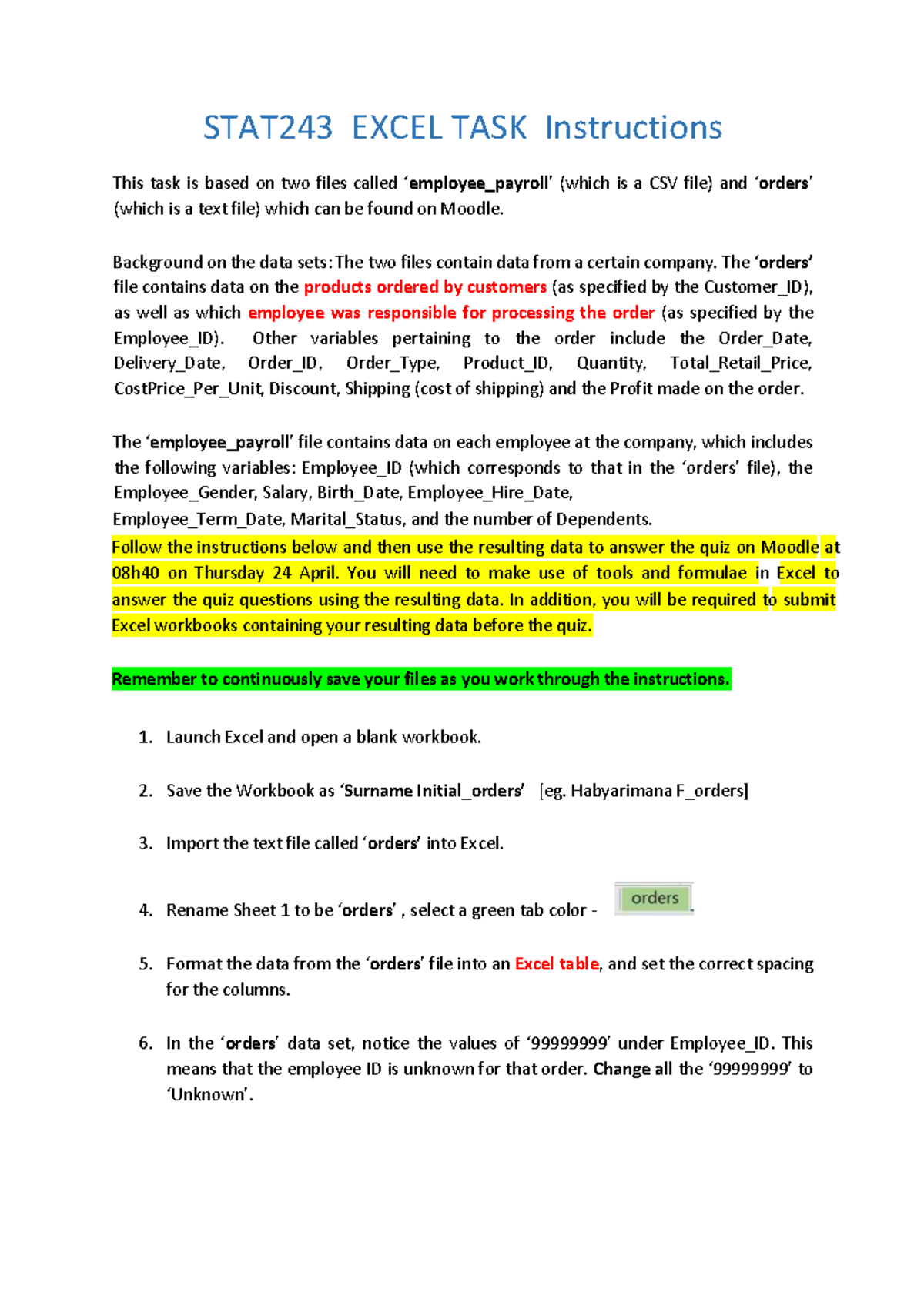 STAT243 EXCEL TASK: Practical Instructions for Data Analysis - Studocu