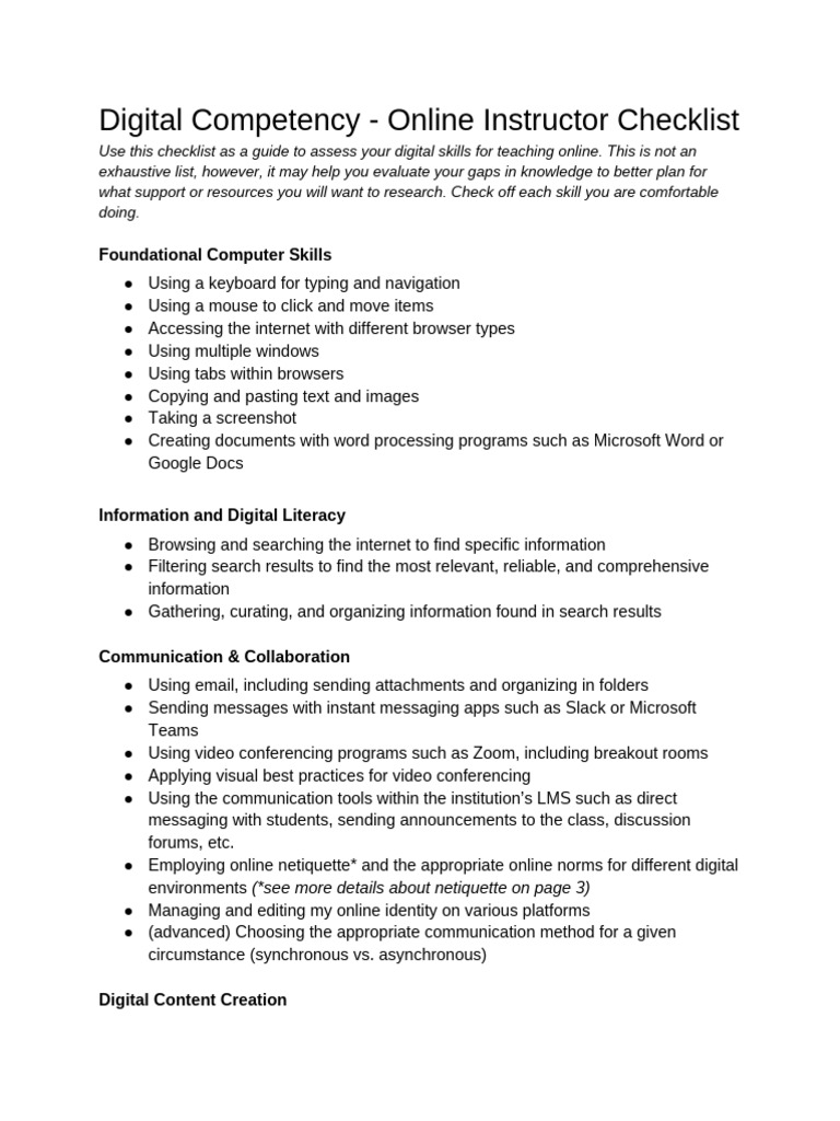 Digital Competency - Online Instructor Checklist | PDF | Internet ...